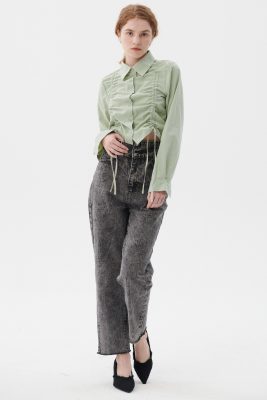 Luna Paperbag Denim Shorts Front zip fly Waist self-tie Loose fit Side cut out detail Raw edge hem Product Specification […]